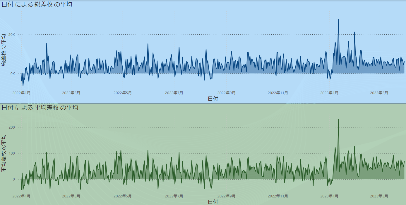 「総差枚の推移」にて東京都の数百店舗の各イベント日での総差枚の合計値の推移を表している。