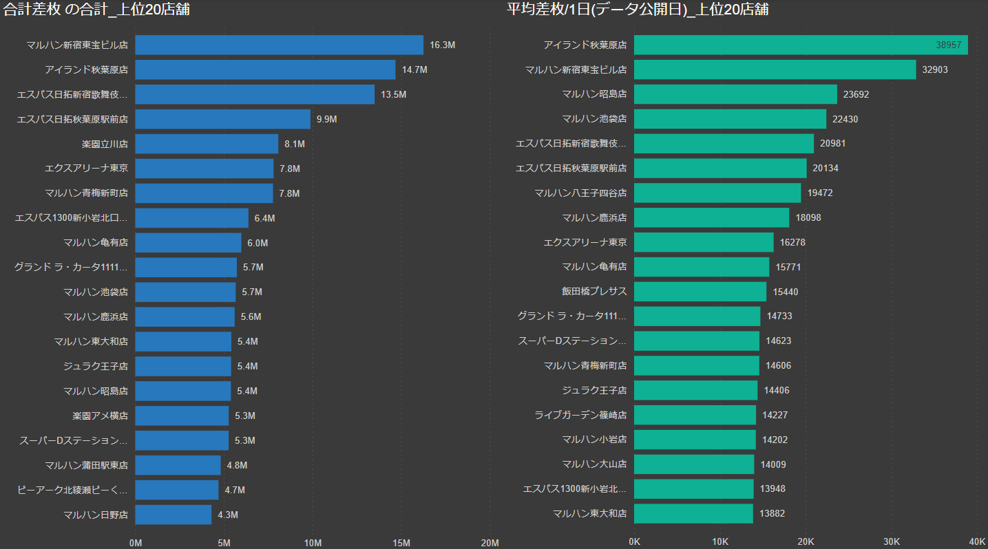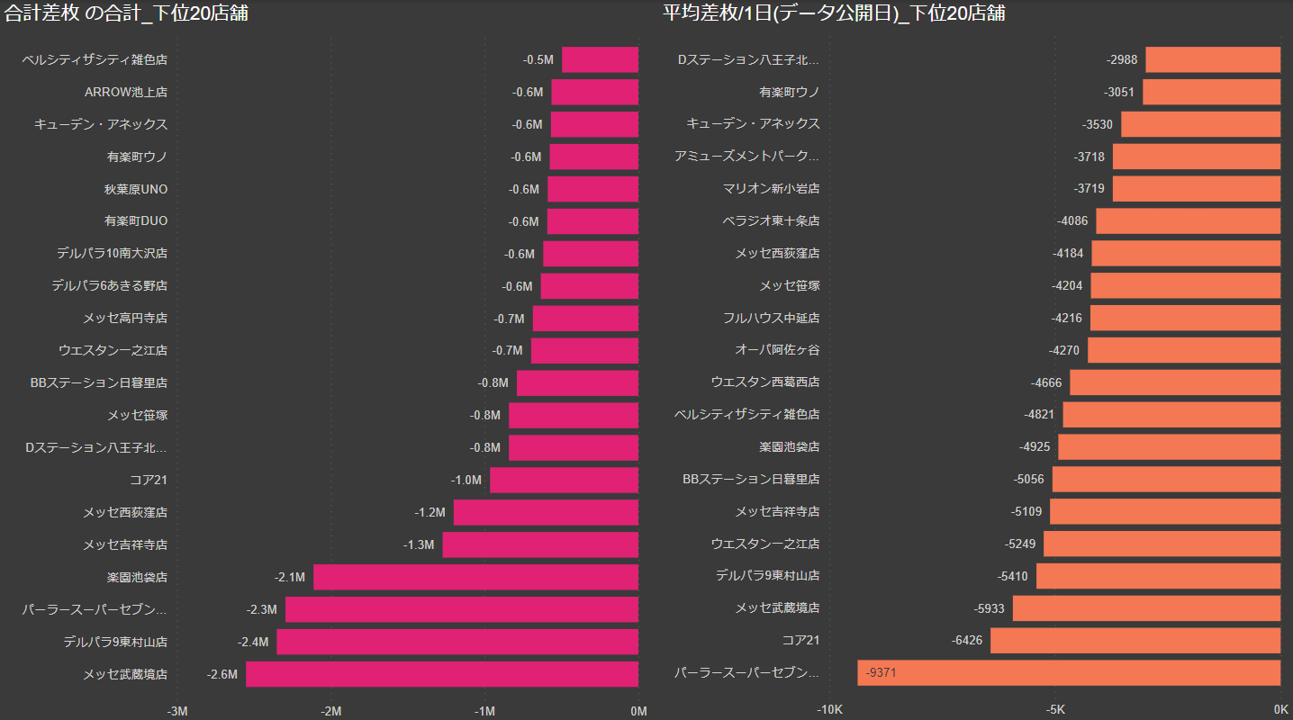 「総差枚 Top20」と「総差枚 Under20」は期間中の総差枚の合計を表している。