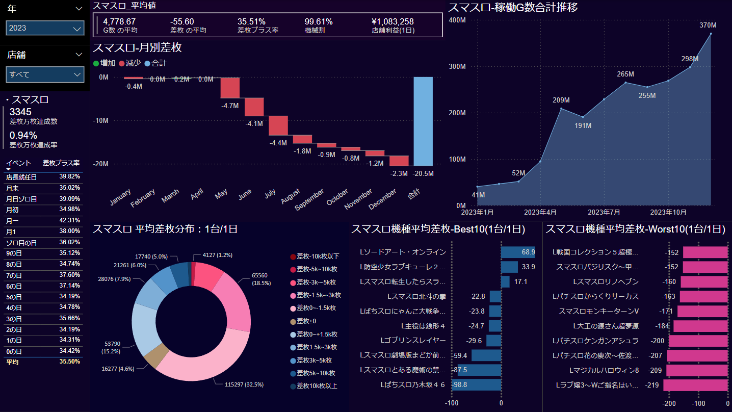 対してスマスロは稼働合計が約2倍になり、店舗利益も同じく2倍になっていることが分かる。