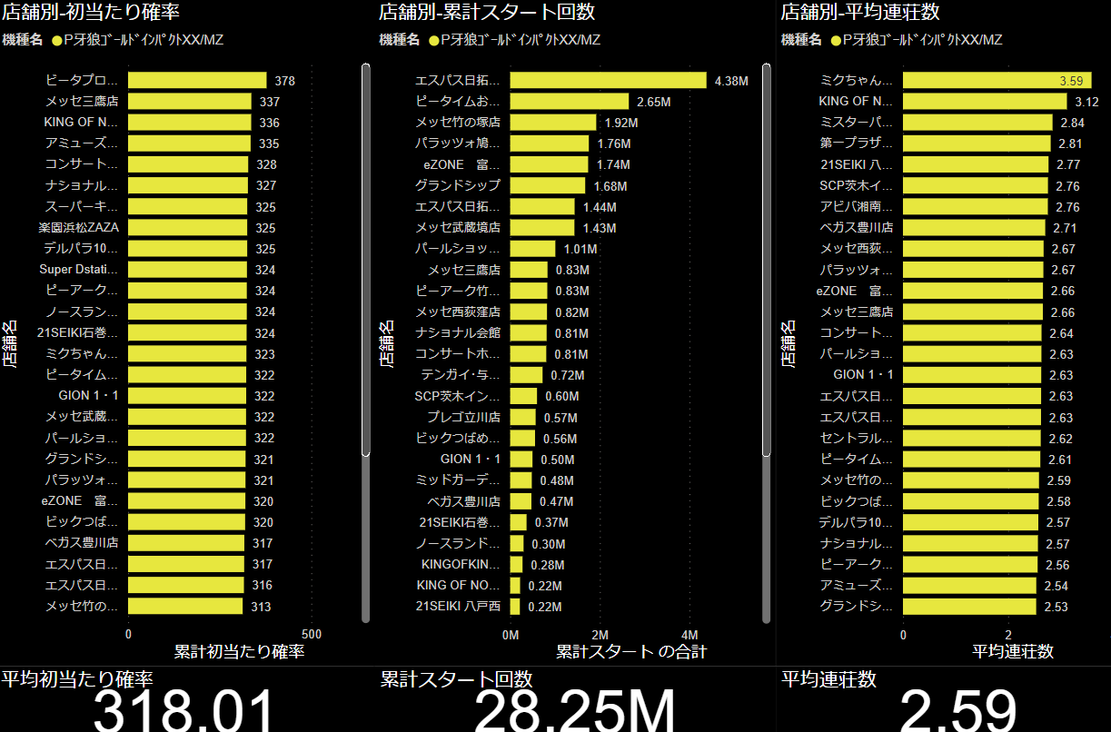 累計スタート数は台の人気や設置台数により差がるため機種ごとの差はあるが